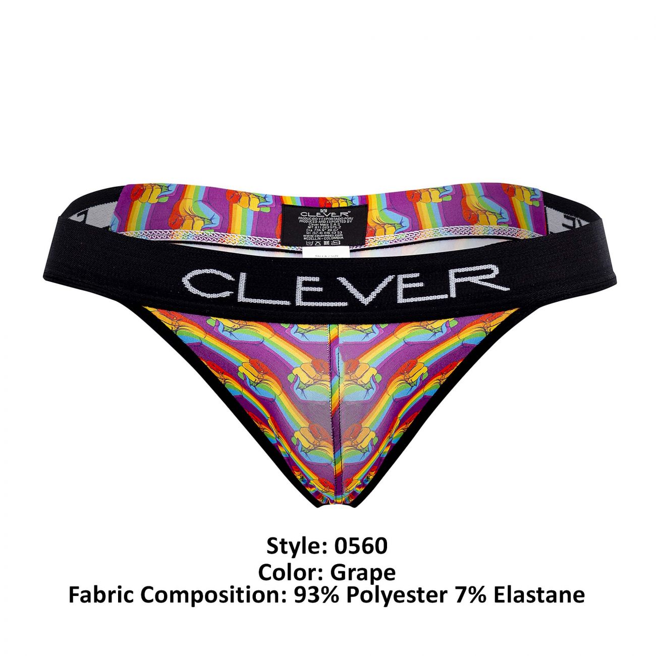 Clever 0560-1 Pride Thongs are made from a resilient fabric that is quick dry and super sleek. Low rise, lean cut thongs provide coverage where it counts. Magnificent anatomical fit.